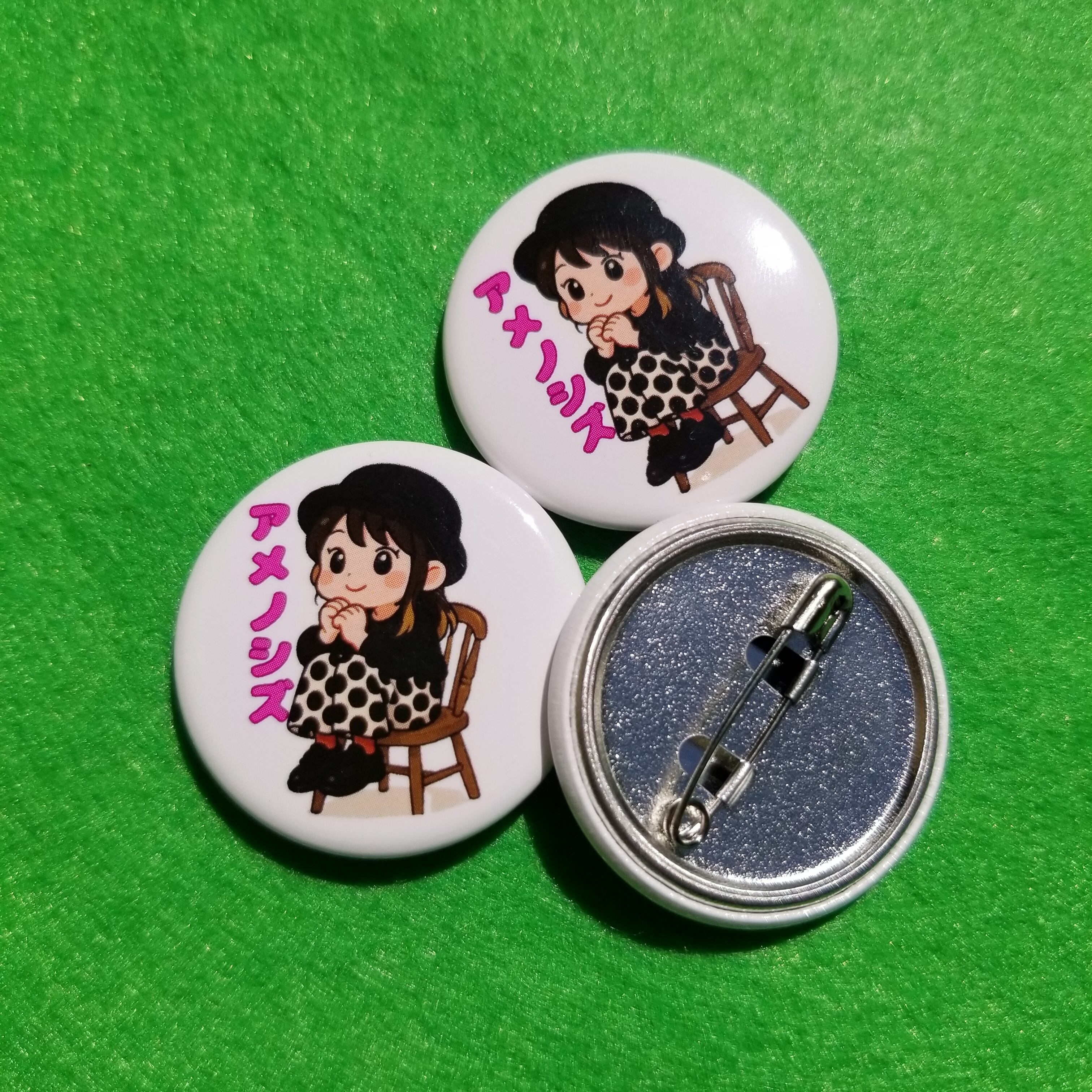 アメノシズを可愛くイラスト化した缶バッチ
