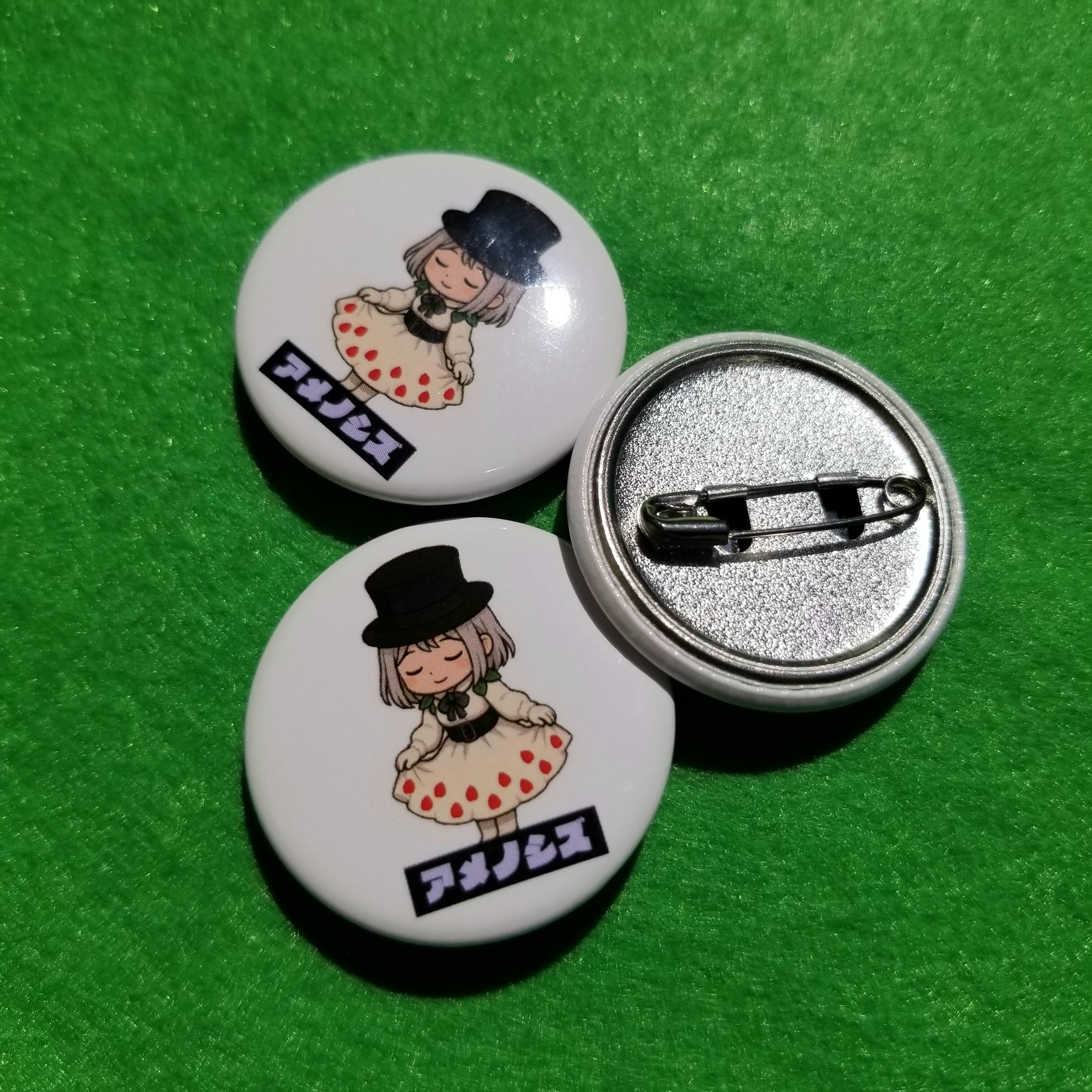 アメノシズのキャラクター「洋装ドール(白)」を可愛くイラスト化した缶バッチ